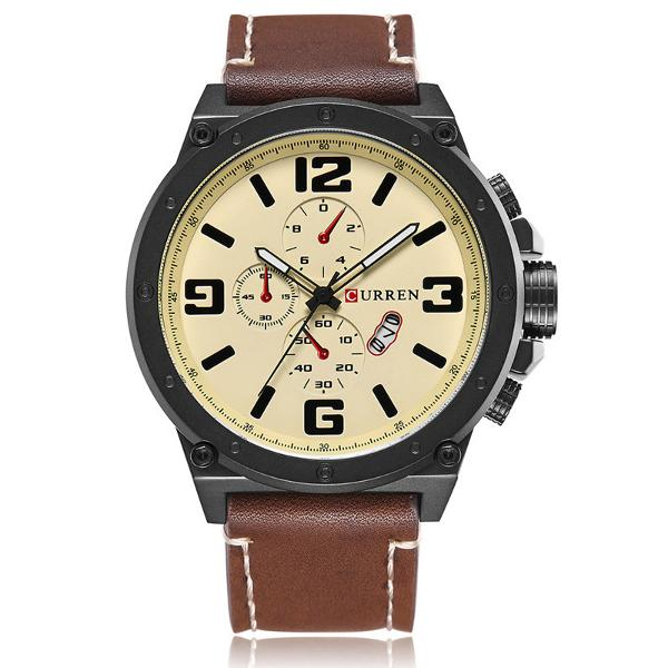 • CURREN 8230 أزياء كبيرة عرض عدد الرجال كوارتز ساعة جلدية حزام الرياضة ووتش