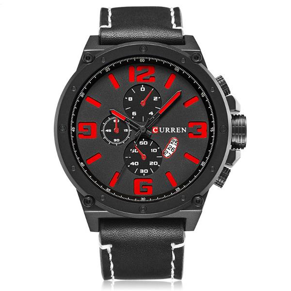 CURREN 8230 أزياء كبيرة عرض عدد الرجال كوارتز ساعة جلدية حزام الرياضة ووتش COD
