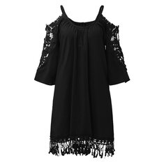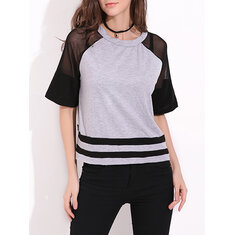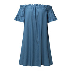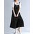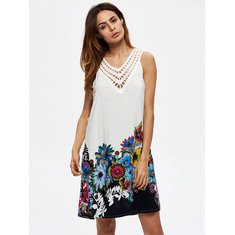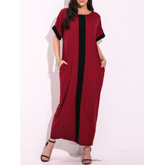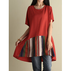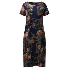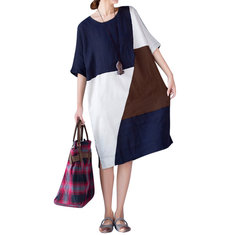 المرأة قصيرة الأكمام طباعة المرقعة فساتين فضفاضة