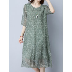 المرأة طباعة فضفاضة س الرقبة نصف كم فساتين