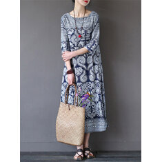 طباعة المرأة الرجعية 3/4 كم فستان ماكسي