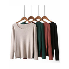 عالية مطاطا المرأة موجة جولة الرقبة قميص البلوز محبوك سترة