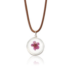 جميل الزهور المجففة كريستال الكرة قلادة الشمع حبل الترقوة القلائد