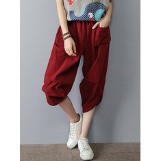 النمط الشعبي المرأة نقية اللون مرونة الخصر غير النظامية فضفاض الحريم السراويل