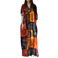 المرأة العرقية نمط الطباعة العشوائية الخامس عنق طويل الفساتين